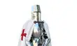 Armure Templiers de décoration avec épée, cape avec croix pattée rouge et bouclier.