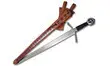 Epée de frappe pour la pratique de l'escrime amateur. Epée une main avec lame à gorge pleine soie en acier carbone forgé main. Poignée recouverte de cuir avec pommeau.